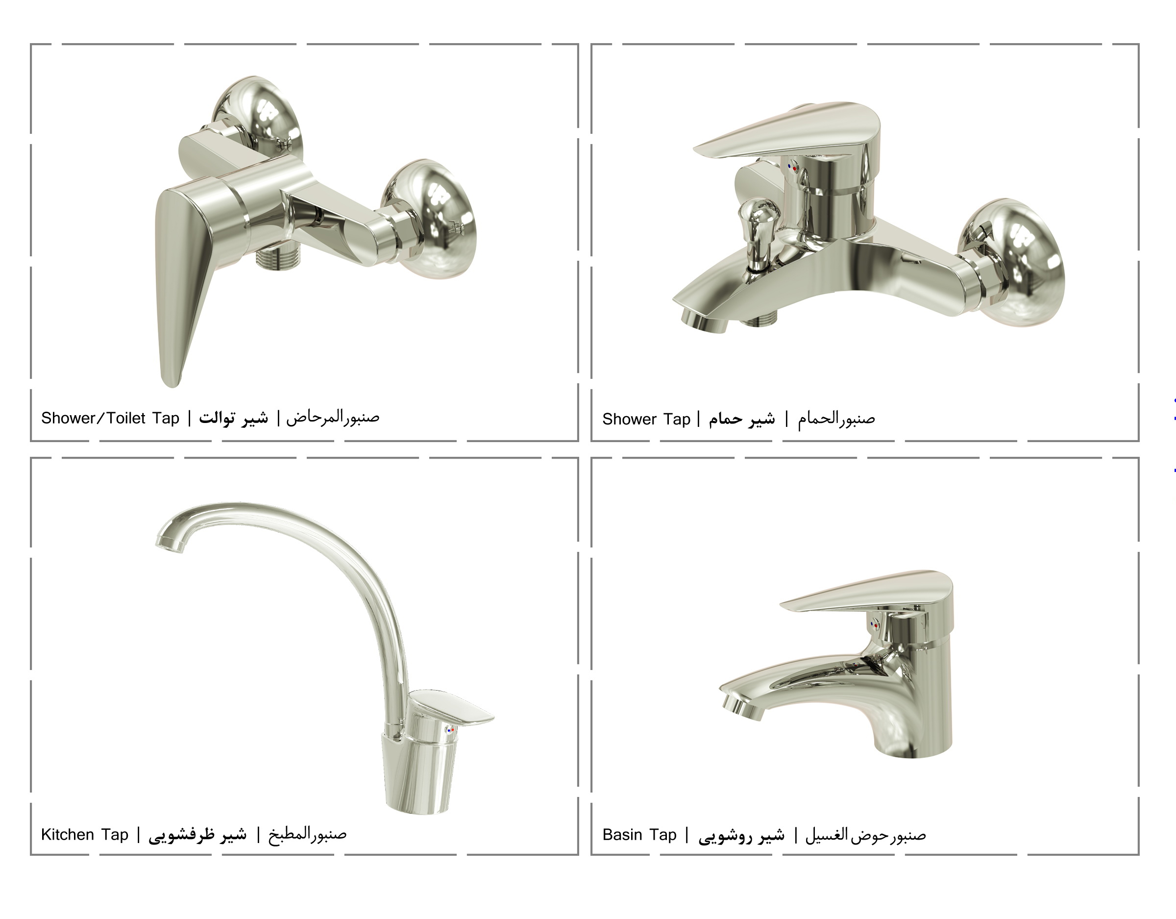 - ست شیر آلات نیکا، شامل شیر های روشویی، آشپزخانه، حمام و توالت